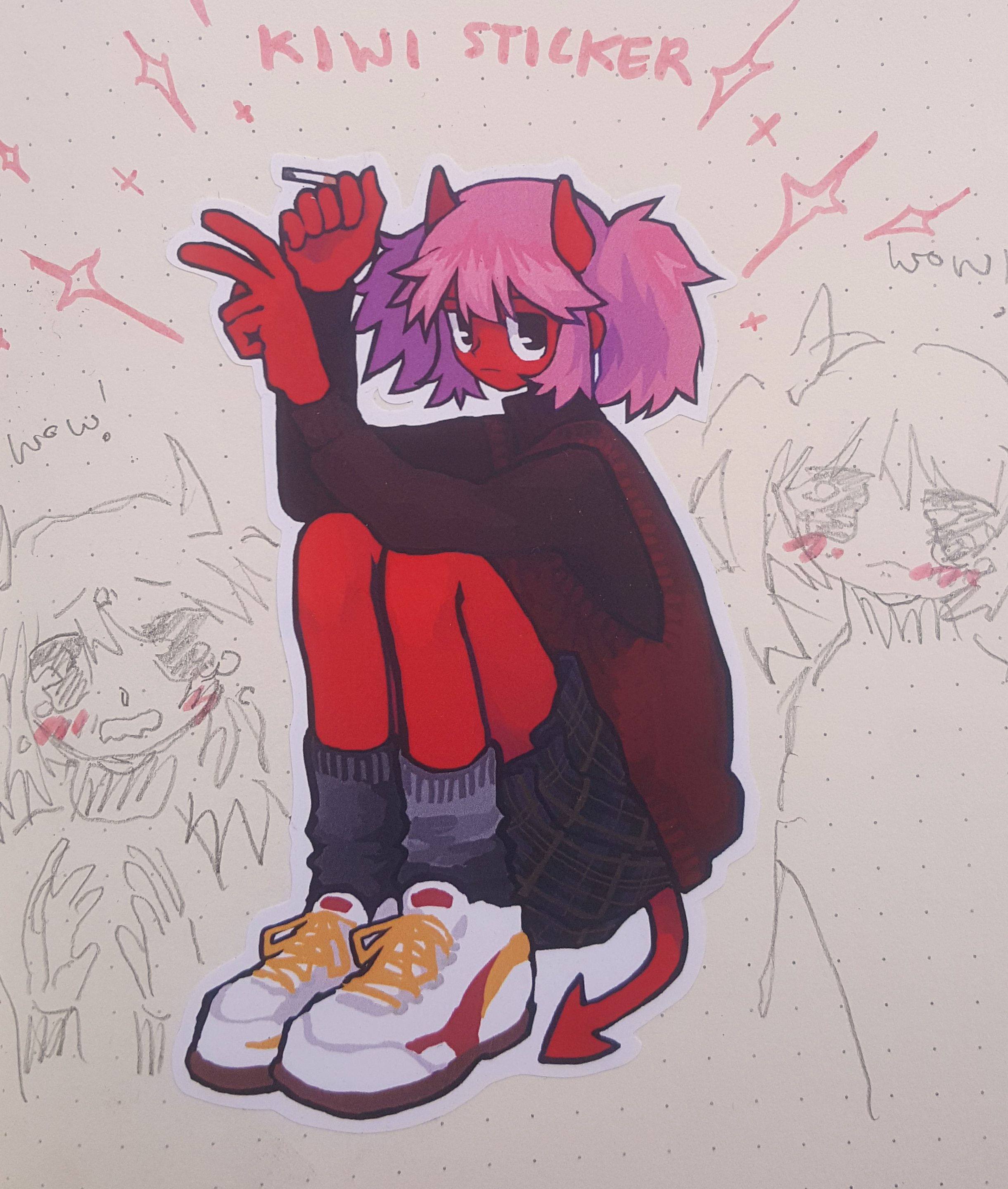 A sticker of kiwi. Its size it about 6 by 10 cm, and it's printed on polyester and has a slightly shiny coating.